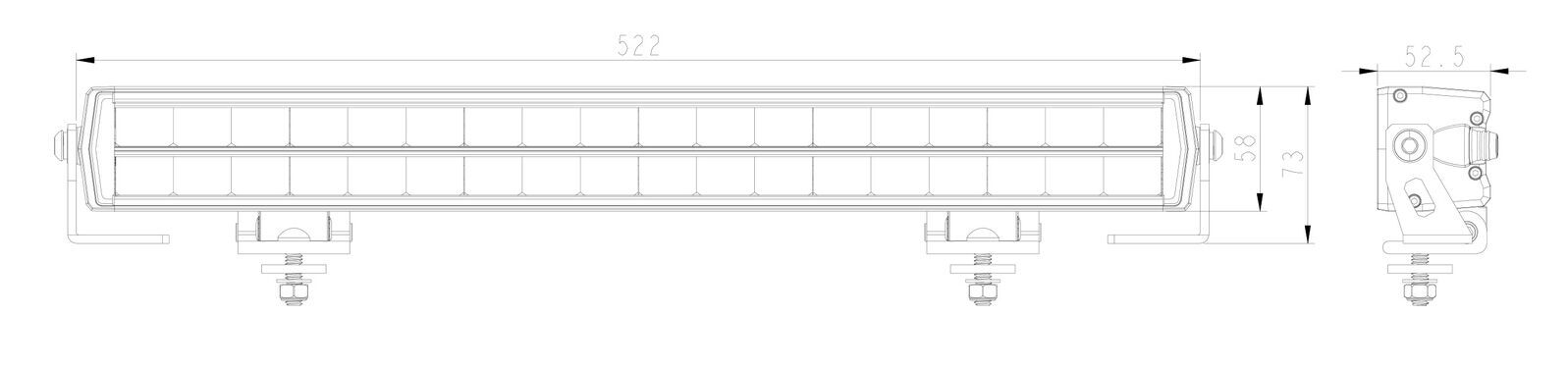 - 1 x 20″ LED Slimline Dual Row Lightbar